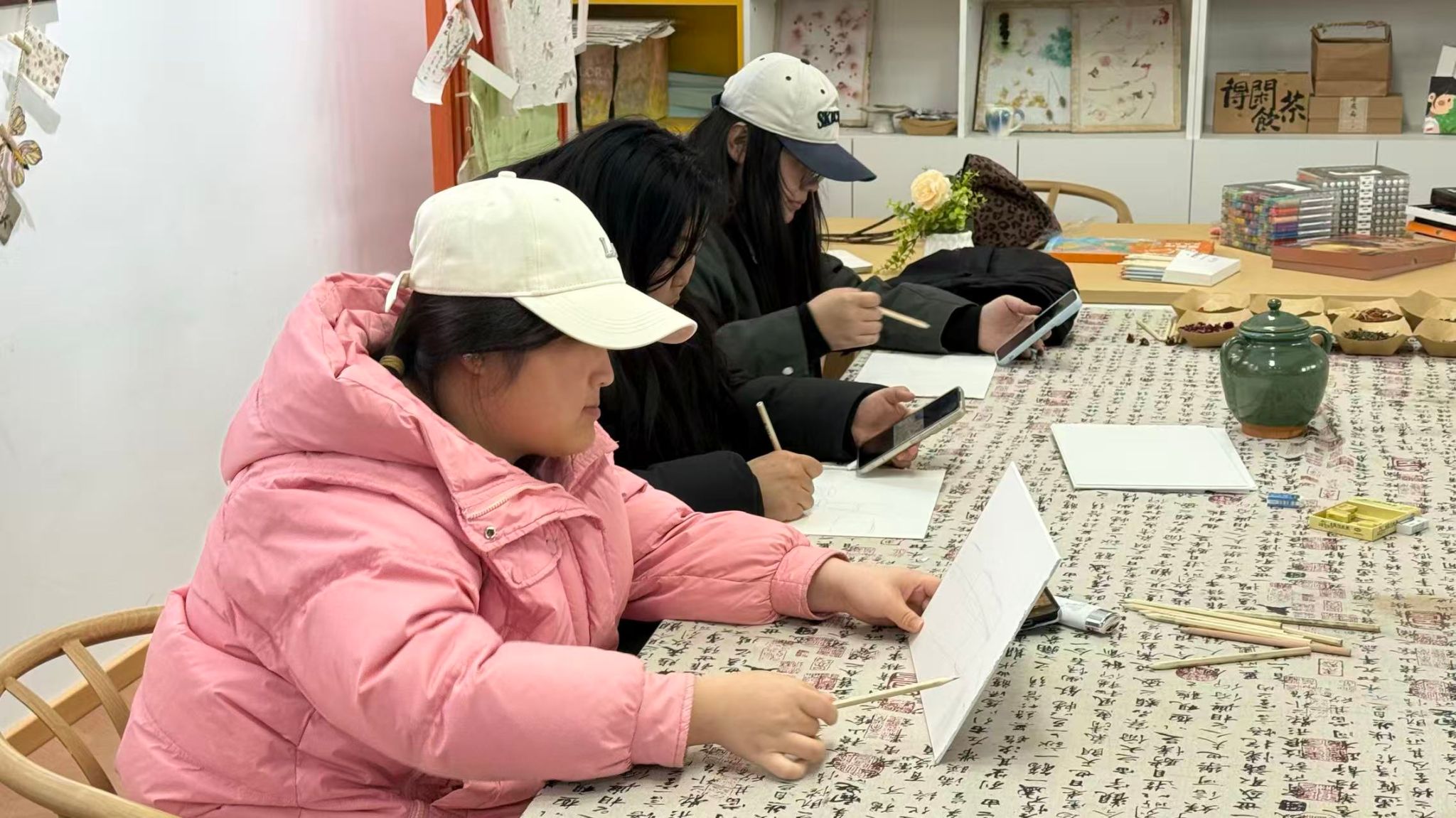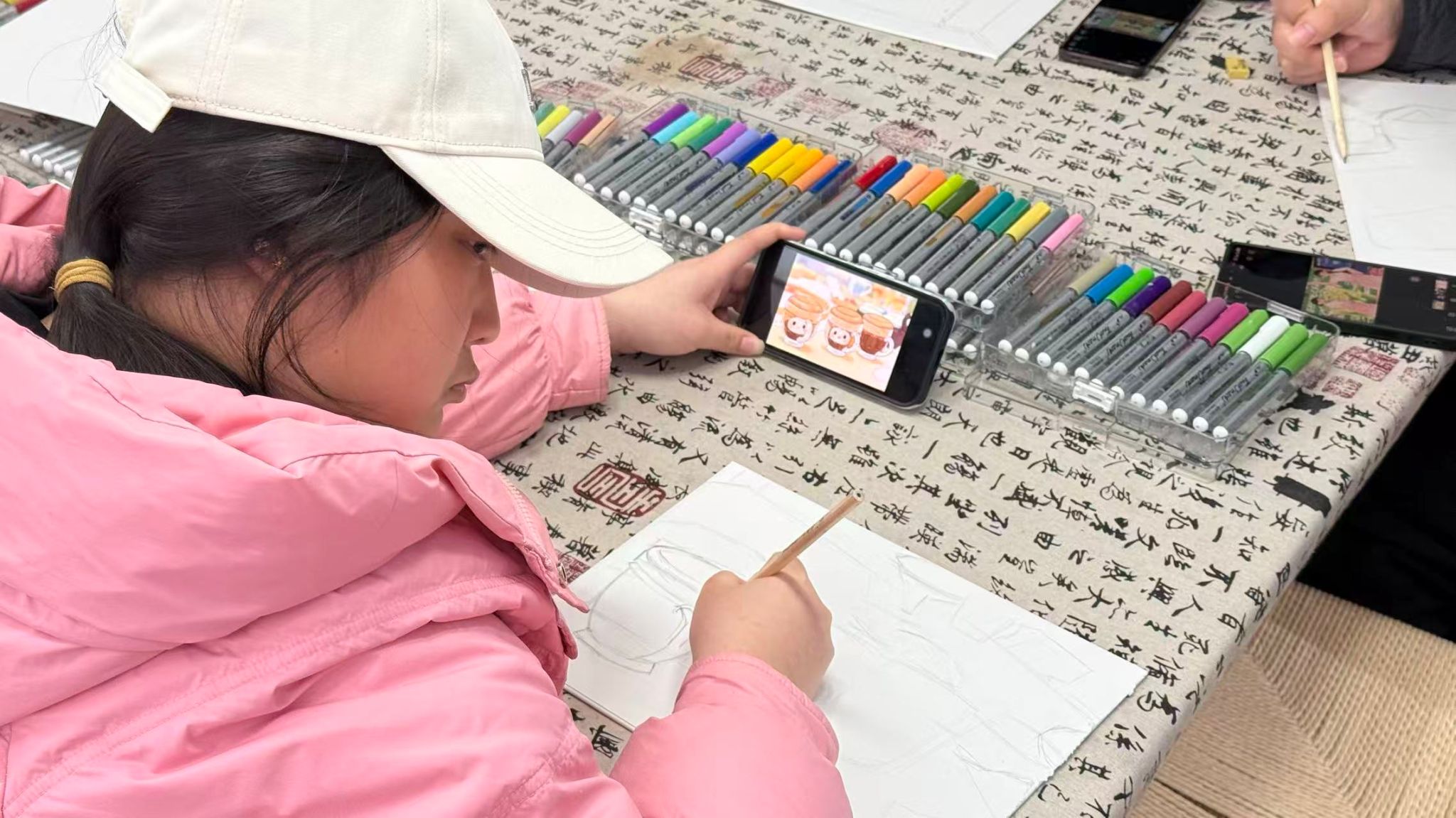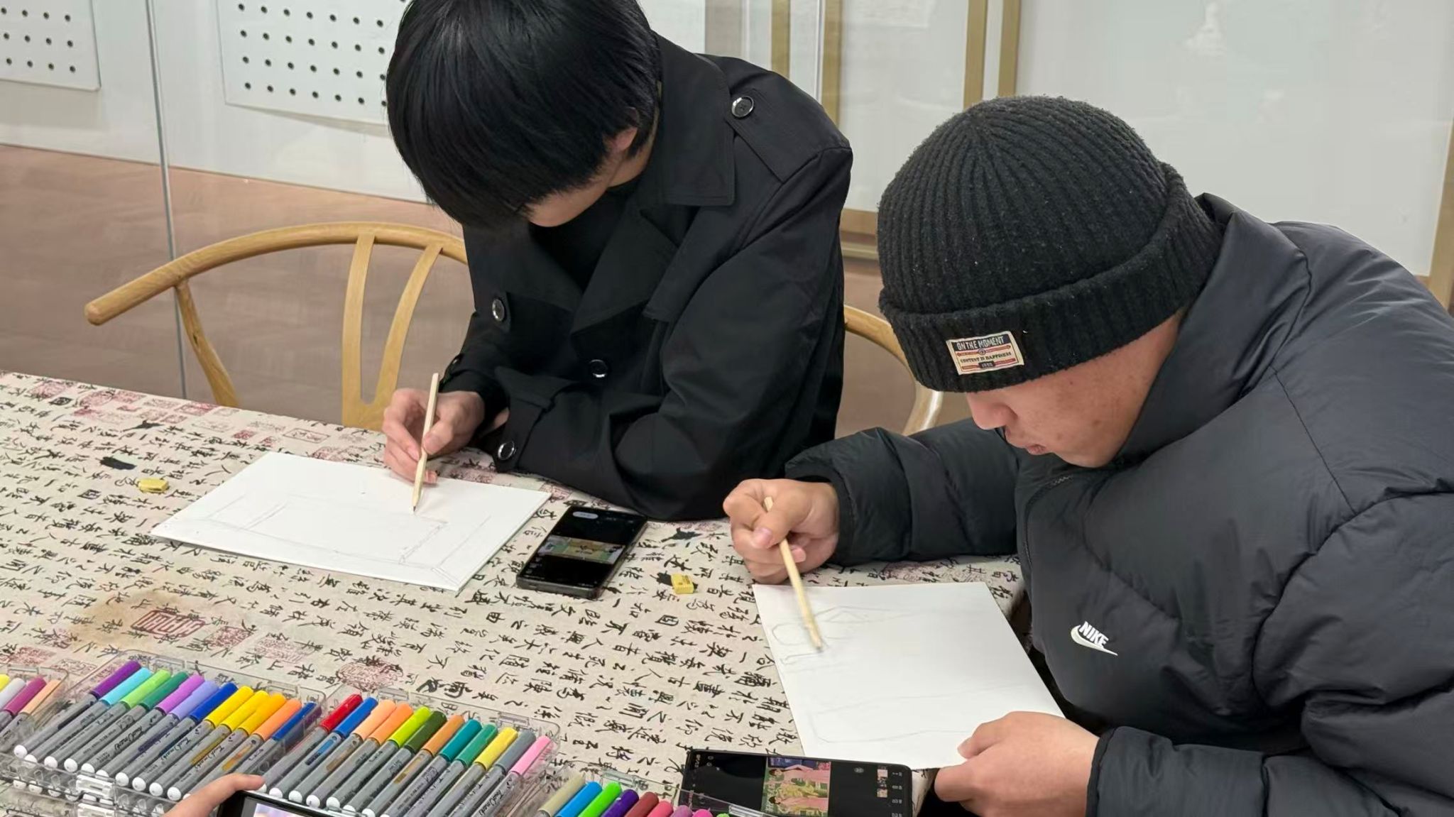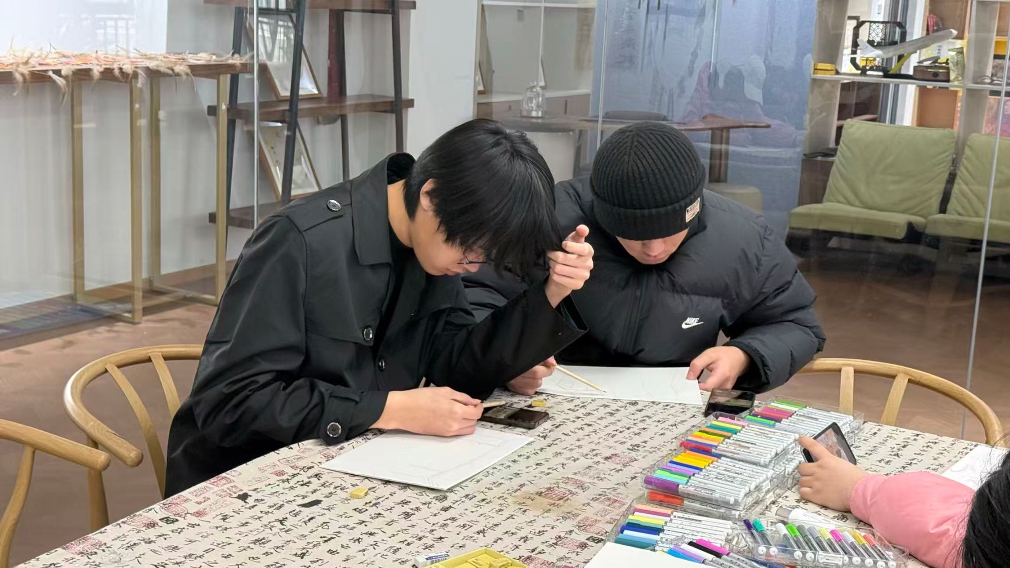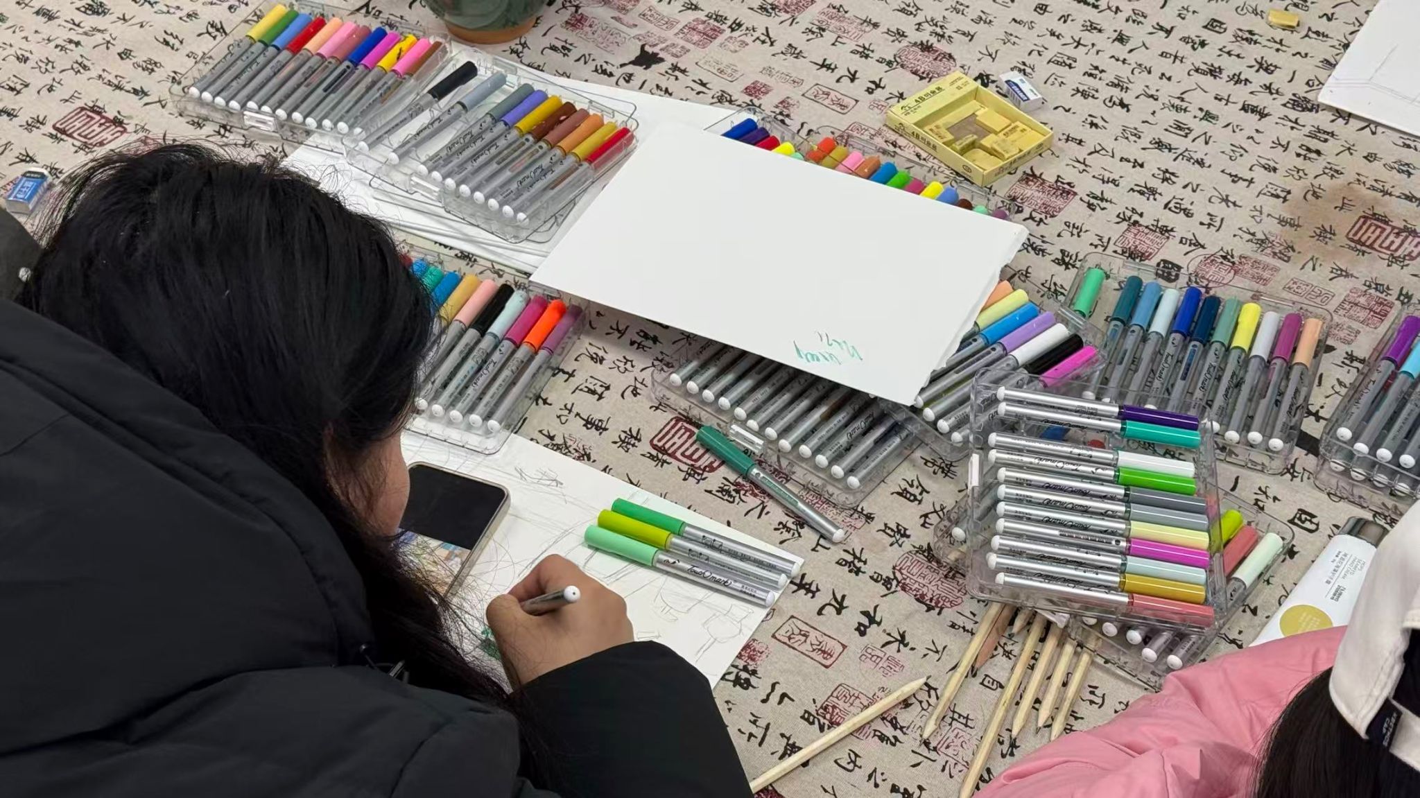 讨论结束后,活动进入创作阶段。工作人员有序分发彩铅、水彩笔、马克笔等多样绘画材料,大家根据自身风格与创作构想,自主挑选适配工具。50分钟的创作时间里,现场笔尖流转、色彩晕染,学子们专注投入,或细腻勾勒,或大胆铺陈,将脑海中的创意与对生活的观察融入画布,一幅幅兼具个性与美感的作品逐渐成型。