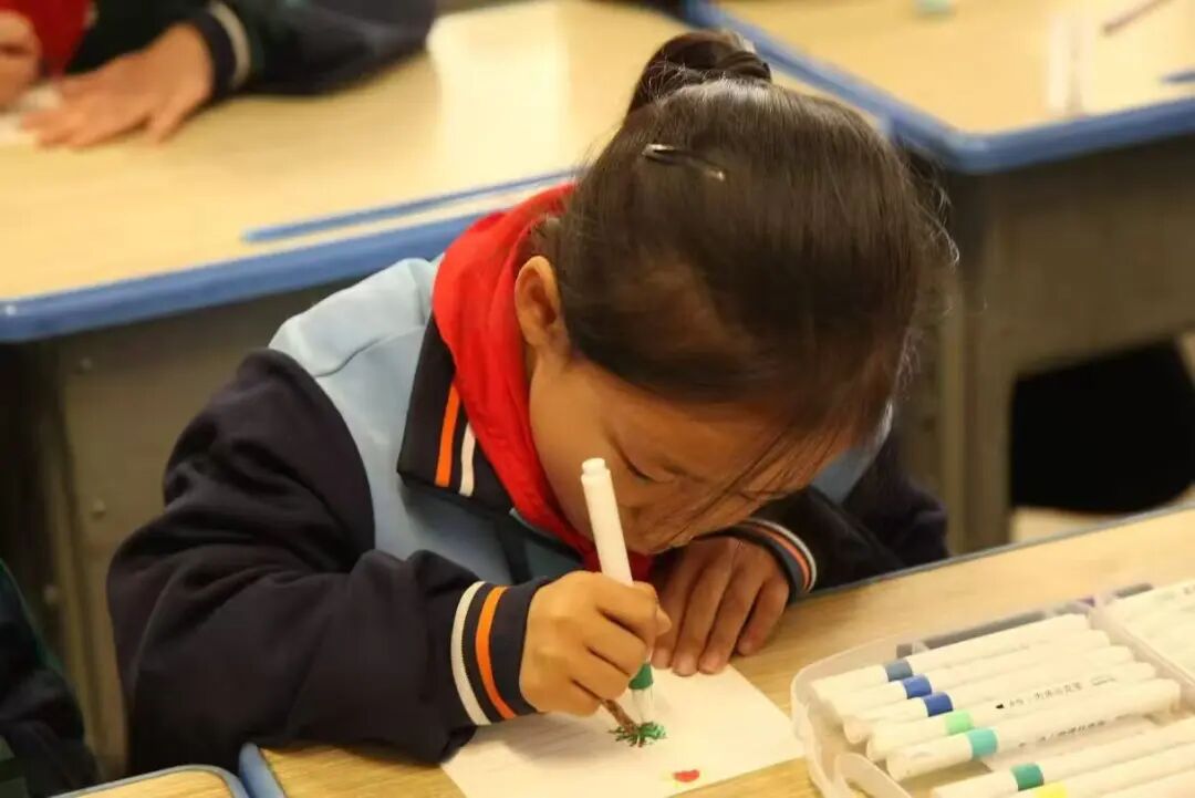 最令人期待的明信片绘制环节来啦!孩子们拿起画笔、彩笔和贴纸,以“无近视的清晰世界”为主题尽情创作。有的画下和伙伴们在操场远眺的场景,远处的大树枝叶分明;有的画出课上讲的有助于爱护眼睛的蔬菜、水果;还有的用稚嫩的字体写下“我要保护好眼睛”“上课一定坐端正”等的暖心标语激励自己在未来的生活中保护眼睛。