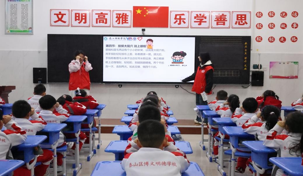 凛冬时节,泰山科技学院远景学院青年志愿者协会的“晒护眼收获,亮明眸风采”主题公益活动,在博文明德小学温情启幕。志愿者化身“护眼小老师”,通过趣味课堂、互动问答、实操练习等丰富形式,为小朋友们普及护眼知识、培养良好用眼习惯,用青春力量守护孩子们的明亮未来。