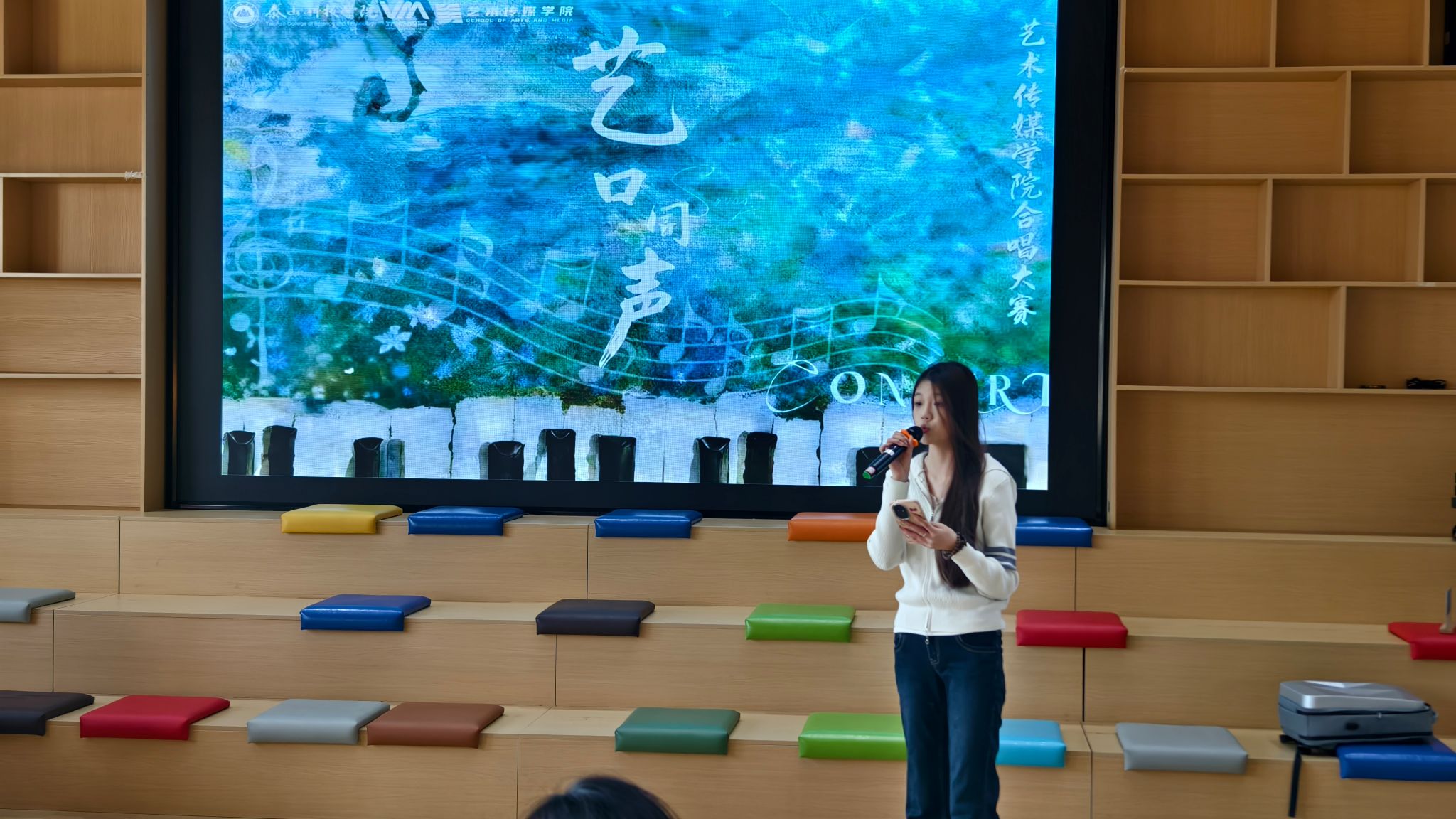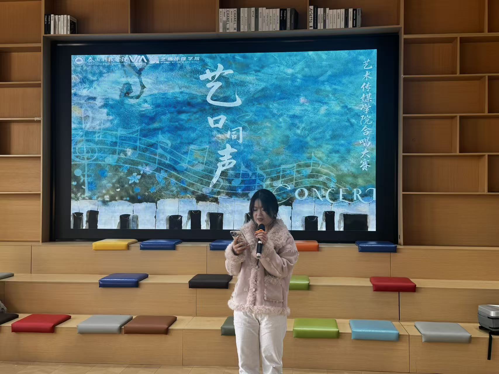 活动开场,艺术传媒学院学生会艺术团杨明慧副部长率先登台,为现场师生详解活动全貌。她从比赛初衷出发,清晰介绍赛程设置与评分标准,让选手们明确展示方向。同时她暖心鼓励大家放松心态,尽情释放歌唱才华,将最饱满的状态呈现给评委与观众,瞬间点燃现场氛围。