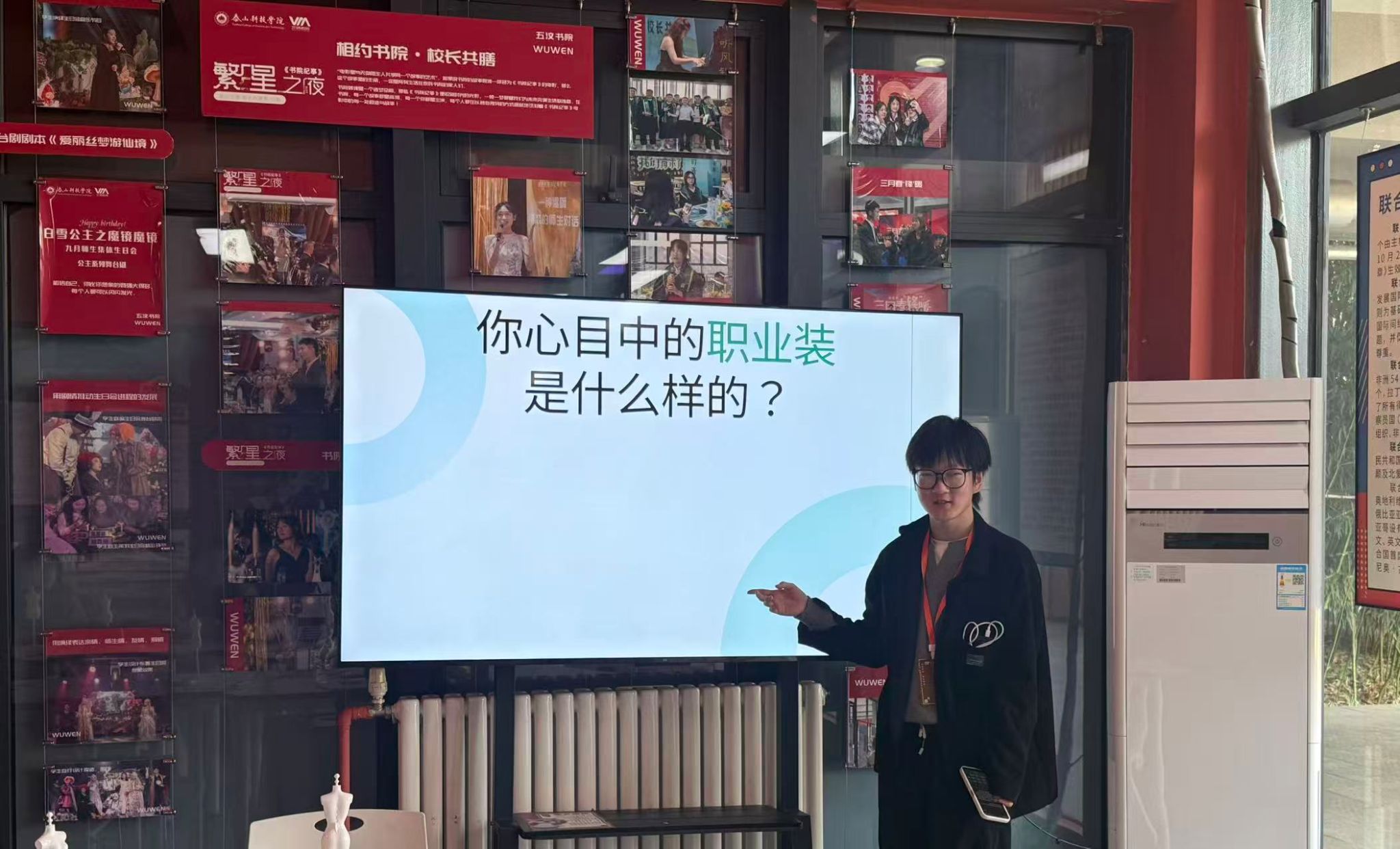 以主持人介绍我院专业特色为引,活动在艺术与职业语汇的交融中拉开帷幕。行政管理学院集统筹规划、沟通协调、务实服务于一体,所塑造的职业形象既需严谨干练、大方得体,更讲求温度与质感——正是这份独特的气质,催生了本次“变废为宝”职业装设计活动,将艺术创作与职业表达进行深度融合。