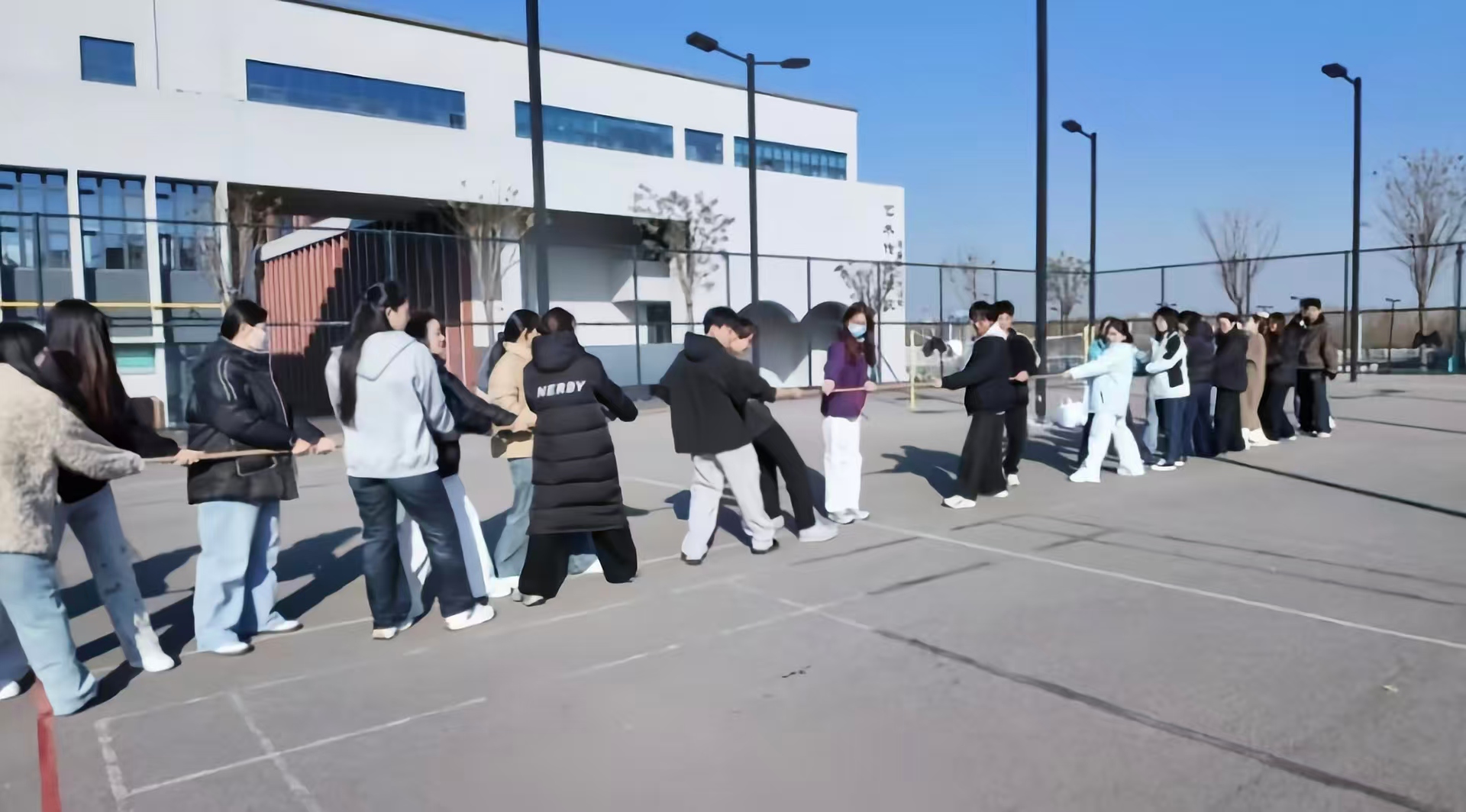 作为运动会的开场重头戏,拔河比赛以“三局两胜”制点燃全场热情。40名同学随机分为两队,同学们紧握长绳、脚蹬地面,身体后倾形成坚实防线。随着班长宣布开始,双方同学们齐声呐喊、奋力拼搏,红绸带在绳中央来回拉锯,加油声、欢呼声此起彼伏。最终,经过三轮激烈角逐,一队凭借默契配合与顽强毅力夺得胜利,这场比赛不仅展现了同学们的竞技风采,更凝聚了班级同心协力的团队精神。