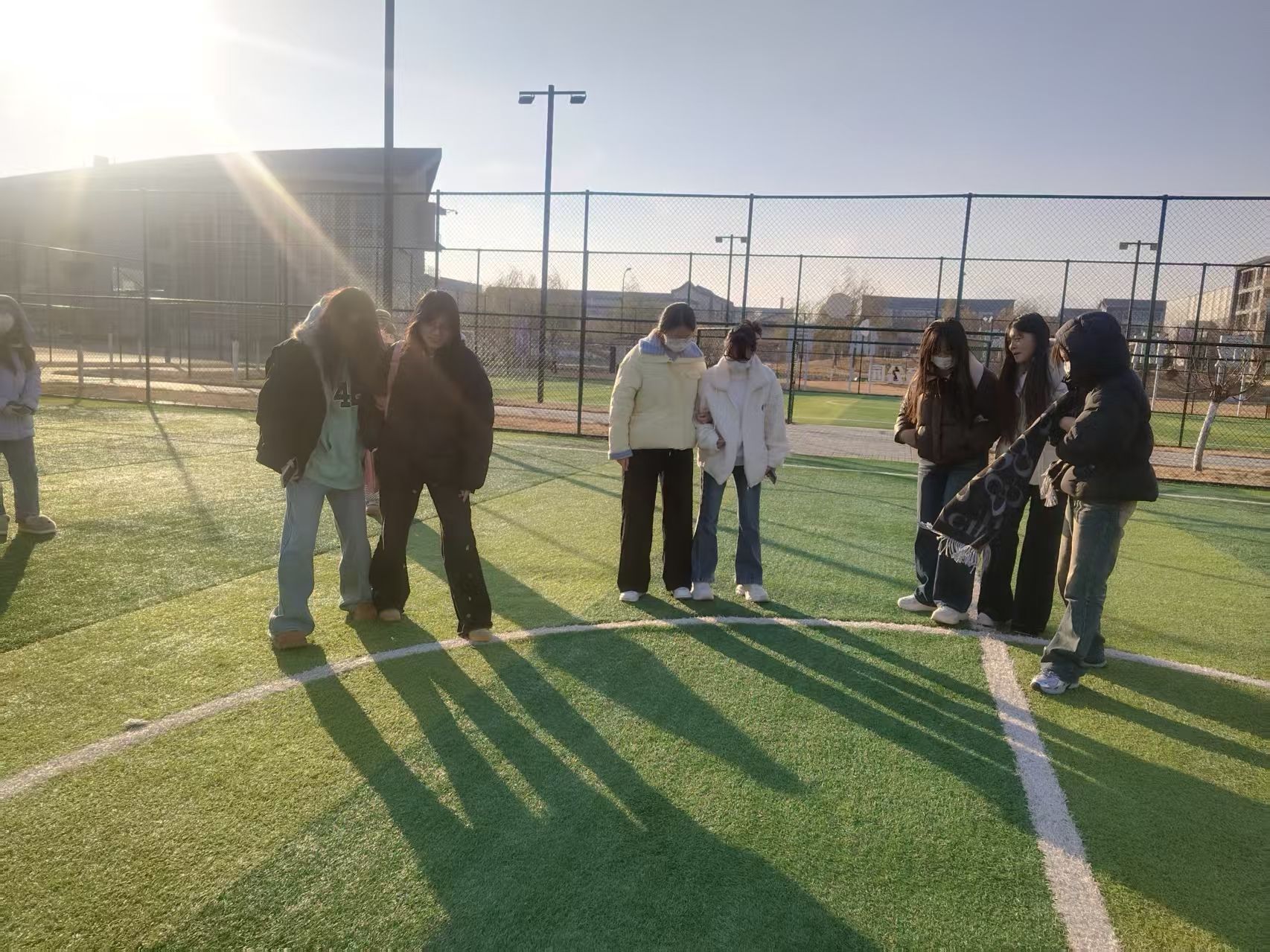 随着主持人热情洋溢的开场,趣味运动会正式拉开帷幕。主持人简单讲解活动流程与安全须知后,将全体同学随机分为4-6个均衡小组,大家迅速围拢成专属小圆圈,一场充满欢声笑语的团队趣味比拼就此展开。
