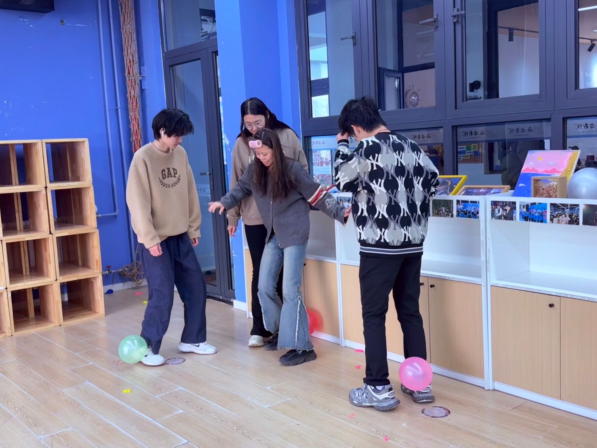 各队派出三名队员,每位队员的脚踝各系上两个气球。比赛过程中,队员们既要灵活走位、护住己方气球,又要相互配合、伺机出击,争取踩破对手的气球。现场气氛热烈,欢呼声与气球的清脆爆破声此起彼伏,充分展现了同学们的活力与竞技激情。比赛最终以各队剩余气球数量计分,生动体现了策略谋划与团队协作的重要意义。