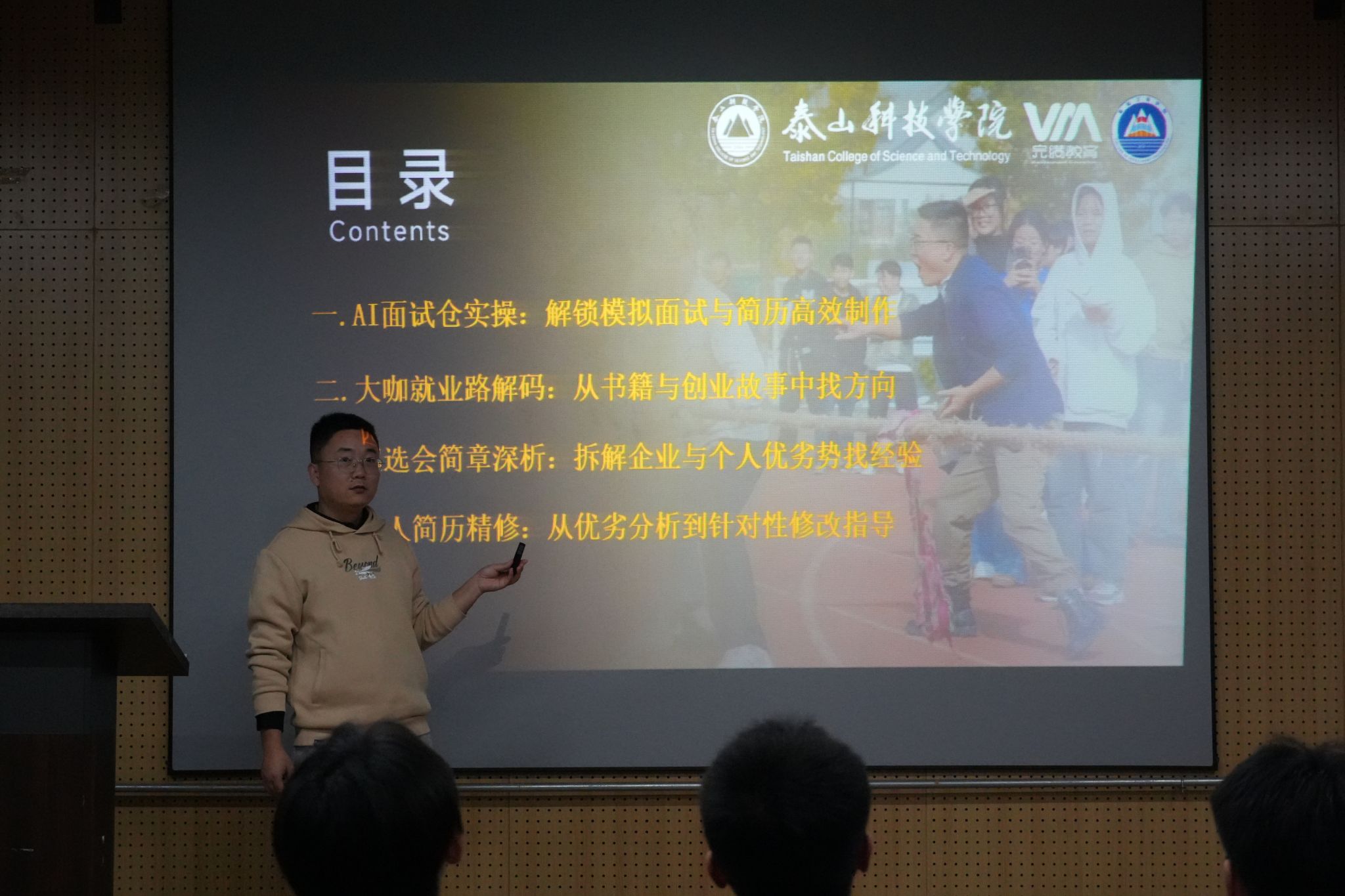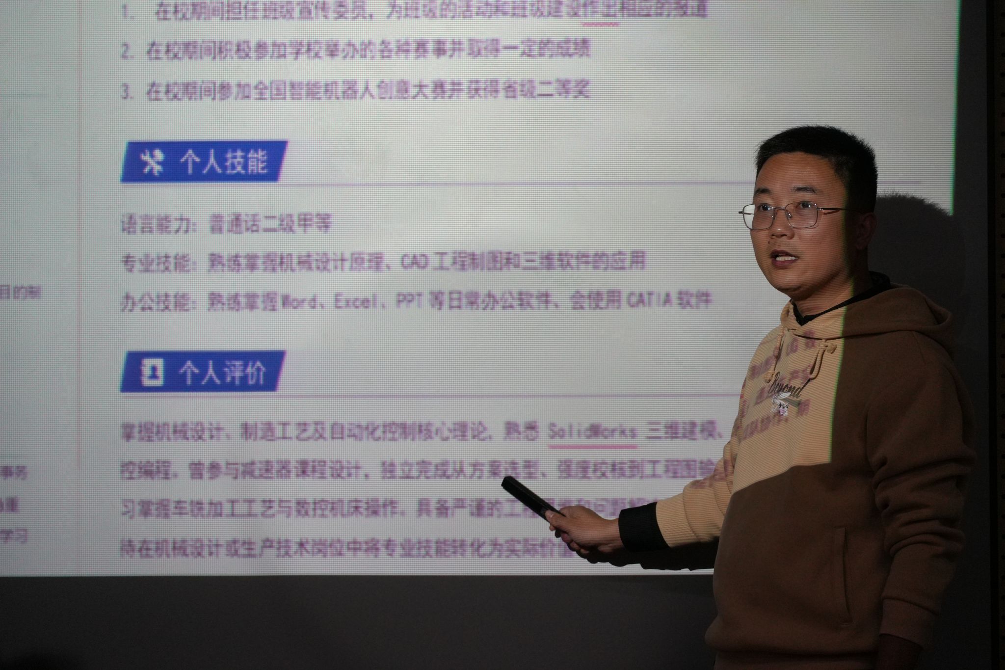 为了进一步就业创业精神,增强大学生的社会责任感和使命感,帮助班级共同进步。也为了适应当前就业市场竞争白热化,机械设计专业应届生面临技术迭代快、岗位匹配难等挑战。为帮助专升本学子突破求职瓶颈,机械设计制造及自动化(专升本)24-1班于2025年10月18日16时于海右书院111教室举办专项赋能就创活动,并邀请其他班级的同学共同参加这次聚焦AI面试技能培养与老师行业经验传承和简历的指导,旨在通过理论与实践结合的方式,提升学生职场竞争力,搭建从校园到企业的顺畅过渡桥梁。
