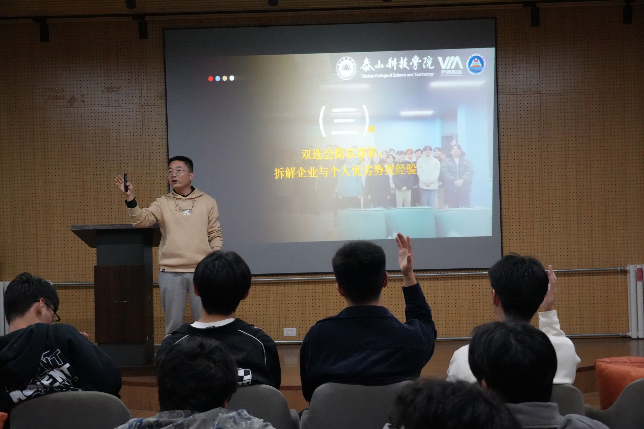 第三个环节是双选会简章深析:拆解企业与个人优劣势找经验,这部分由孙朋老师为大家讲解自己的理解,讲解完后孙朋老师给大家发放了前几天在农业大学招聘会上带回来的企业招聘简章,为同学们研读企业发布的招聘简章。大家不仅关注岗位的职责与要求,更深入分析企业对于人才能力的侧重方向,从中找出自身优势与企业需求的契合点。同时,同学们也客观审视自身存在的不足,思考如何通过后续学习和实践来弥补短板。在交流讨论中,同学们分享各自对于企业优劣势的看法,以及个人在求职过程中可能具备的优势和面临的挑战,相互借鉴经验,共同探索提升求职竞争力的有效途径。