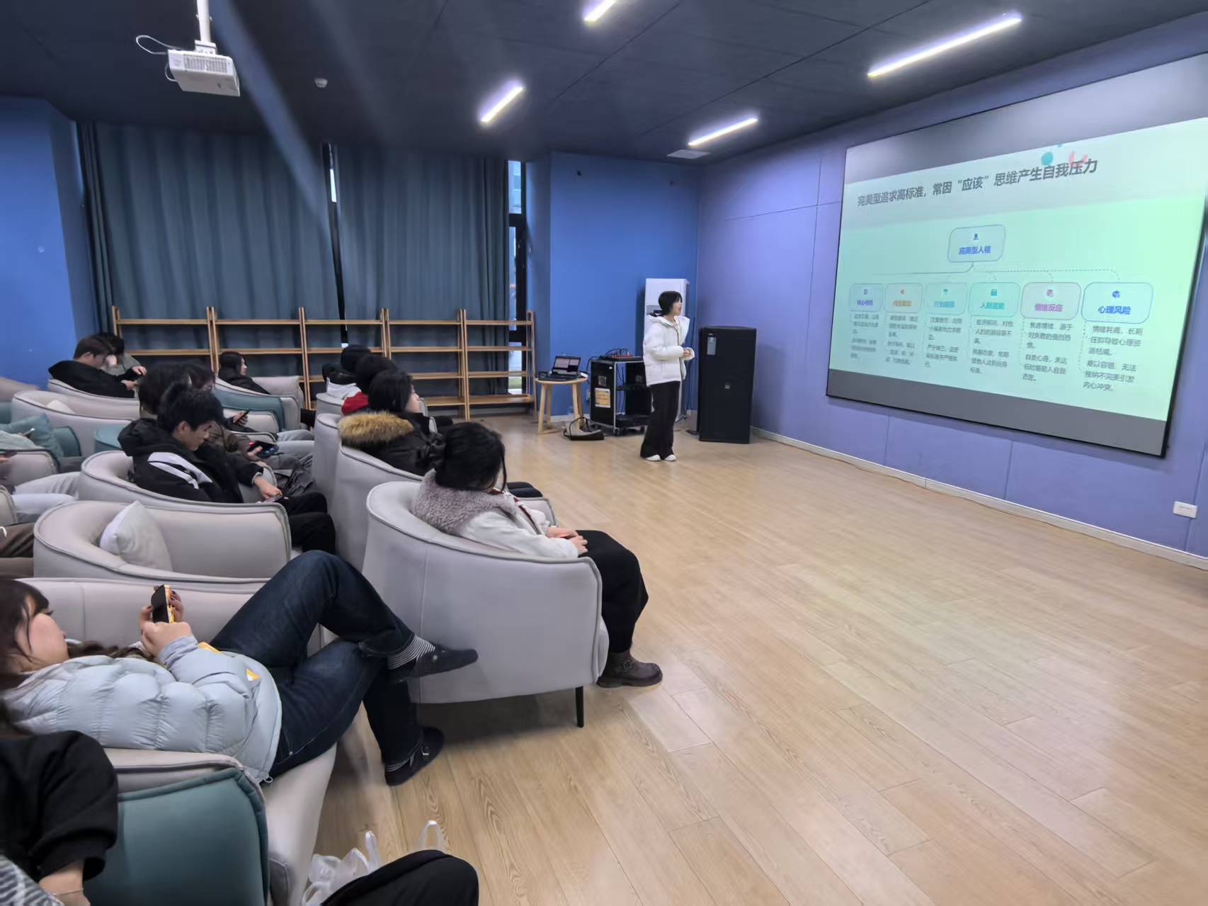 为让理论讲解更易被同学们理解接纳,前期准备组在PPT 制作过程中,精心筛选九种人格类型的核心特质、思维模式及典型行为表现,搭配影视角色、知名人物等鲜活案例,将抽象的性格理论转化为直观生动的内容。同时,团队提前完成活动场地的实地考察与布置,确认桌椅摆放、设备调试等细节,并根据报名人数精准采购所需物资,明确物资用途与管理责任。各小组通过多次沟通对接,细化时间节点与工作标准,从前期通知到场地筹备,从内容打磨到人员分工,每一项工作都力求细致周全,为活动的圆满举办提供了坚实保障。