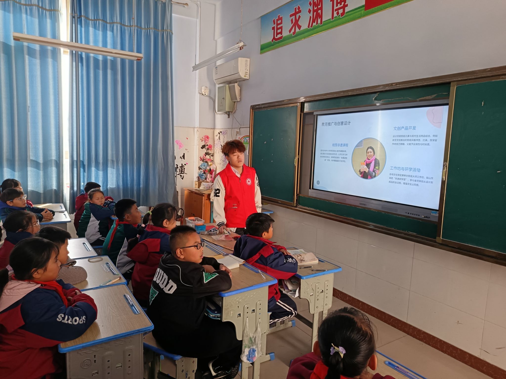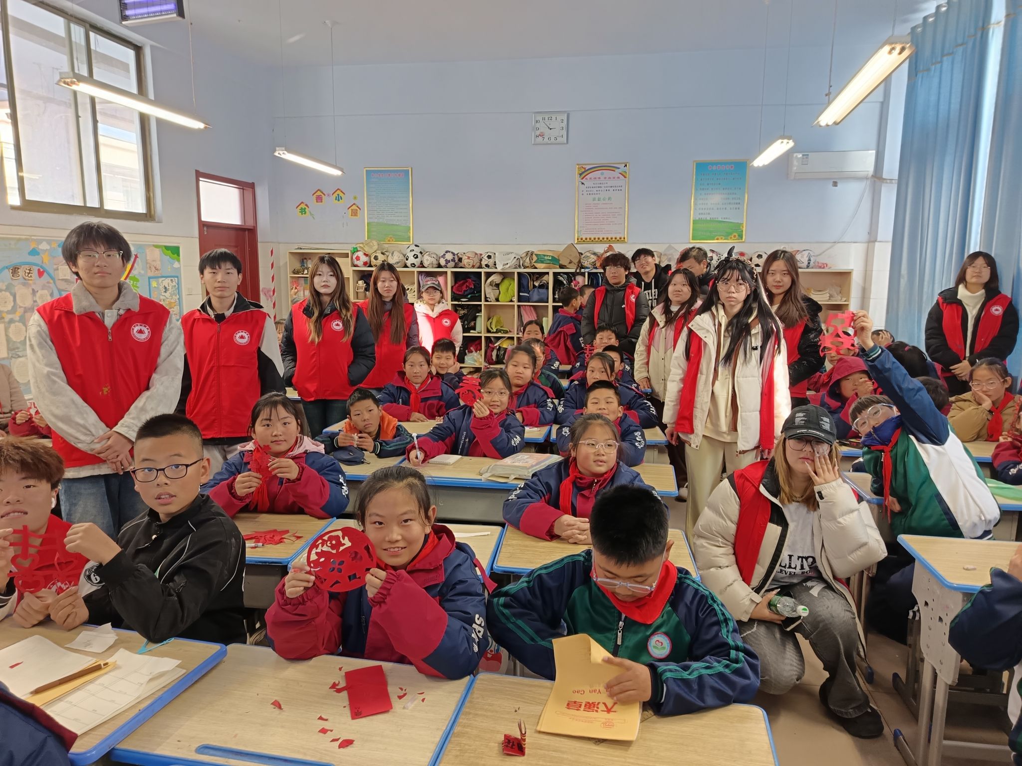 志愿活动走进山口镇中心小学:一场传统与现代交融的文化传承之旅;剪刀在彩纸间游走,图案在指尖绽放,小学生们专注的眼神中闪烁着对千年剪纸艺术的好奇与惊喜。非物质文化遗产作为中华民族的文化瑰宝,承载着民族的记忆与智慧。2025年12月17日下午14:00,一场名为“非遗剪纸润童心”的特别志愿服务活动在山口镇中心小学成功举办。这次由泰山科技学院艺术传媒学院动画(本)25-1班团支部精心策划的活动,不仅仅是一次简单的剪纸教学,更是一次传统文化与现代教育理念的深度融合。