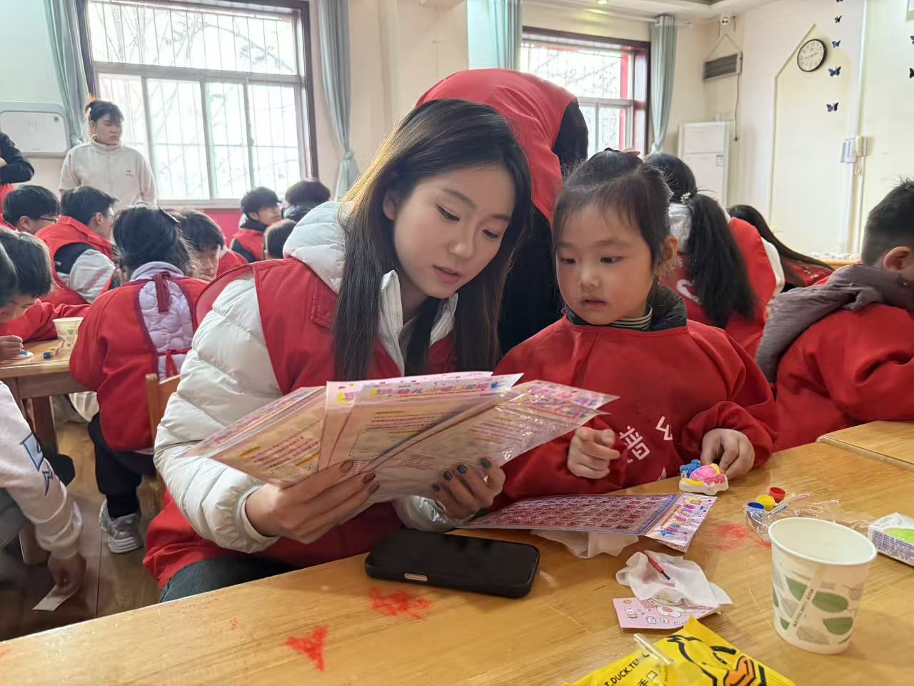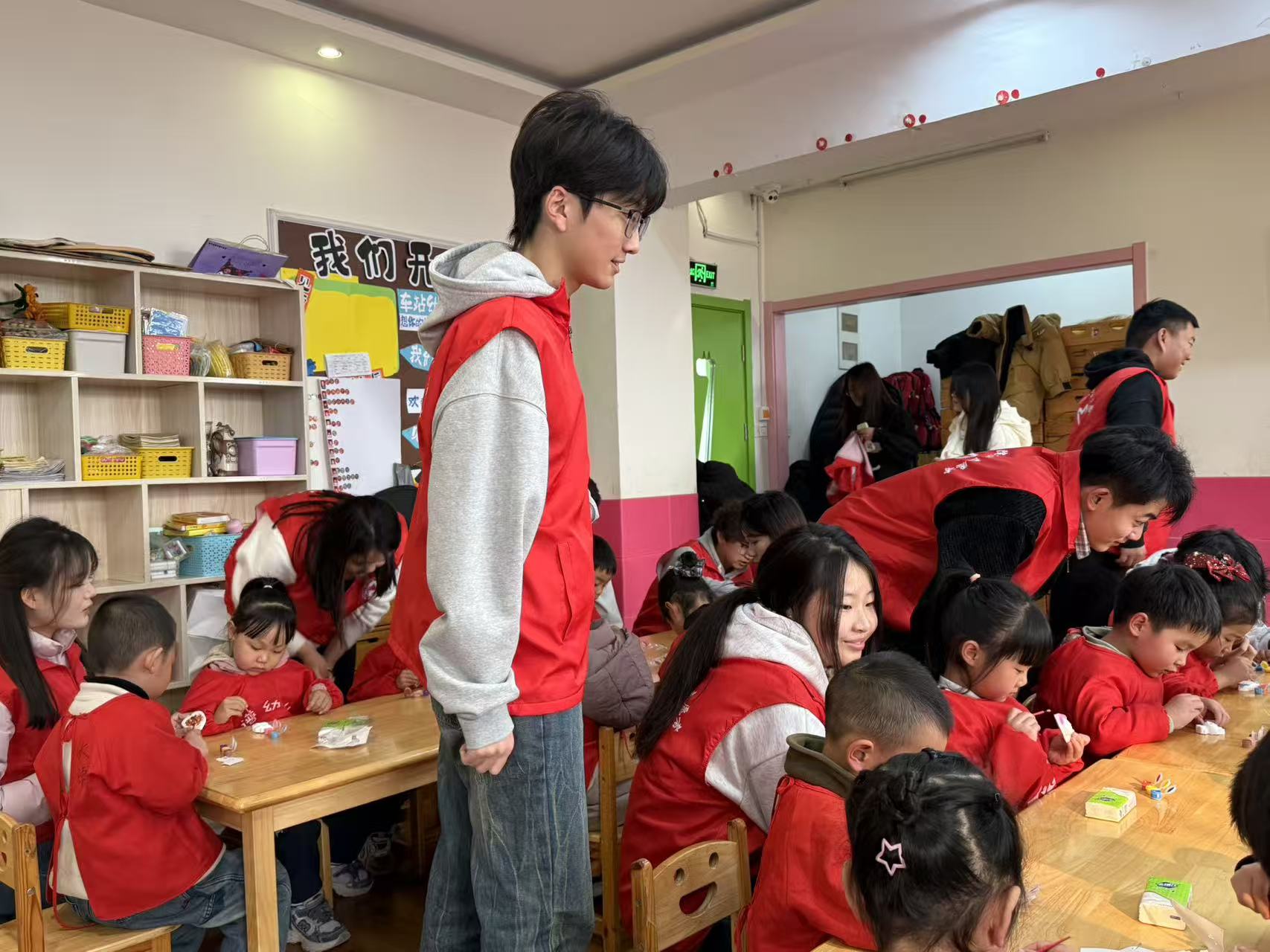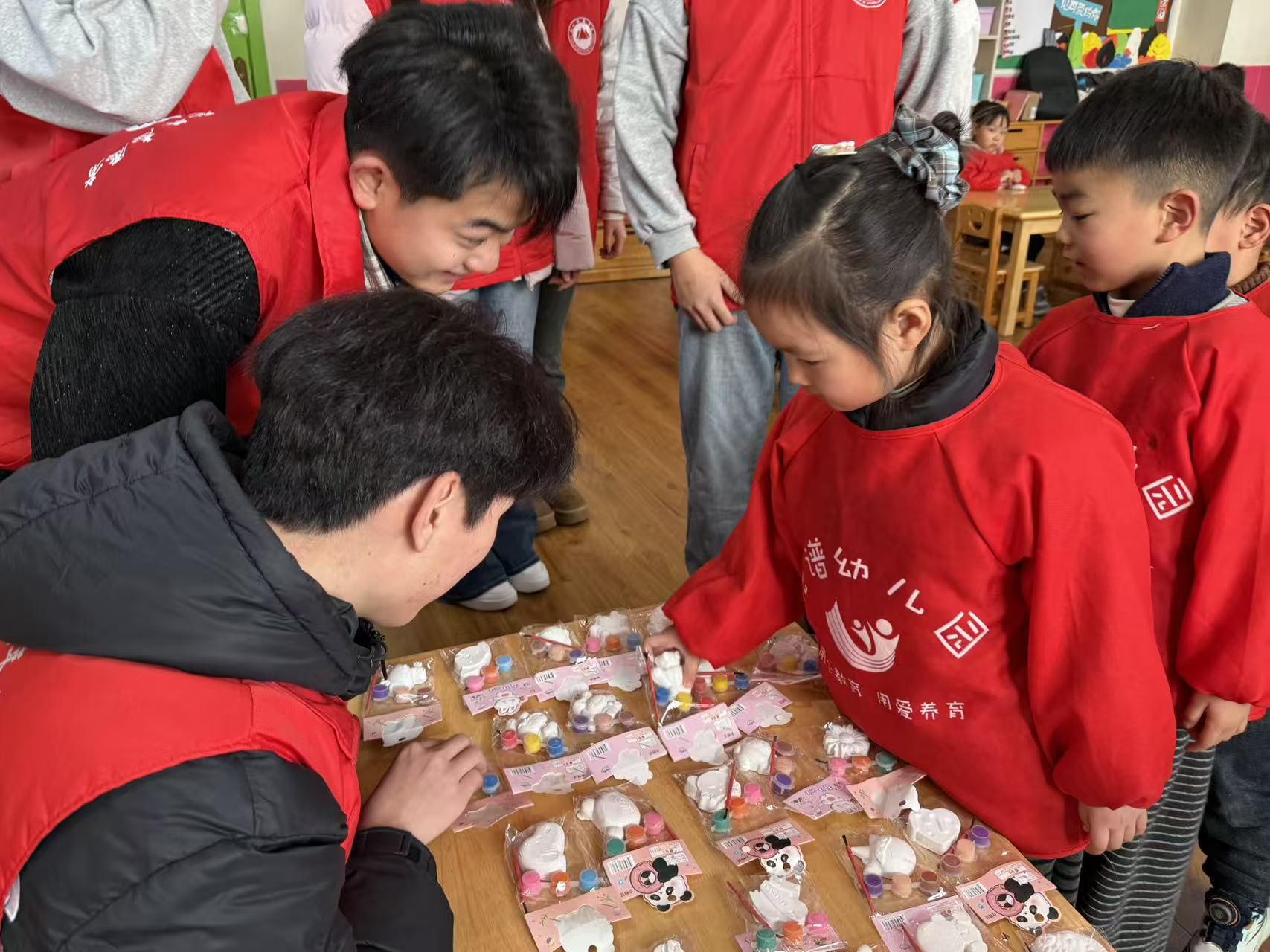 以色彩为媒,搭建温暖桥梁!活动开始前,同学们早早抵达幼儿园,麻利地布置活动场地:将石膏娃娃整齐摆放,把湿巾、纸杯分置各桌,细心为小朋友们铺好卫生纸防止弄脏衣物。从“小朋友别着急,慢慢选颜色” 的温柔叮嘱,到 “这个颜色涂在这里真好看” 的真诚夸赞,每一个细节都藏着满满的耐心。当小朋友们握着画笔迟迟不敢下笔时,志愿者们蹲下身手把手示范;当颜料不小心沾到小手时,立刻递上湿巾轻轻擦拭,那些双向奔赴的温暖,让志愿时光变得格外治愈。